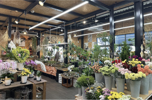 地域トップクラスの売り場面積と品揃えで、シーンに合わせたお花を幅広く取り揃えています。