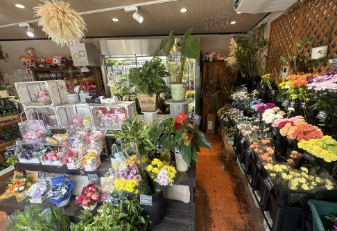 切花や鉢花など、コンパクトながらも幅広く取り揃えております。