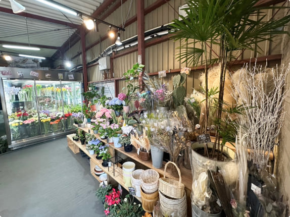 ギャラリーのような内装が魅力の店舗です。開放感あふれる空間で、ゆっくりお花をお選びいただけます。