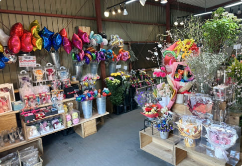 生花を中心に、季節の花苗、鉢花、観葉植物、バルーン、シャボンフラワーなども取り揃えております。