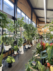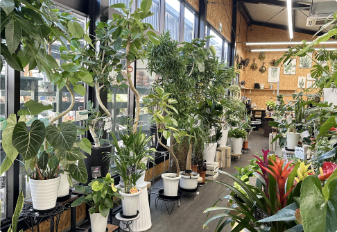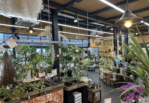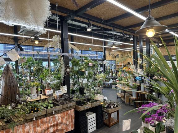 ゆったりとした店内には、色とりどりの切り花や観葉植物が並び、